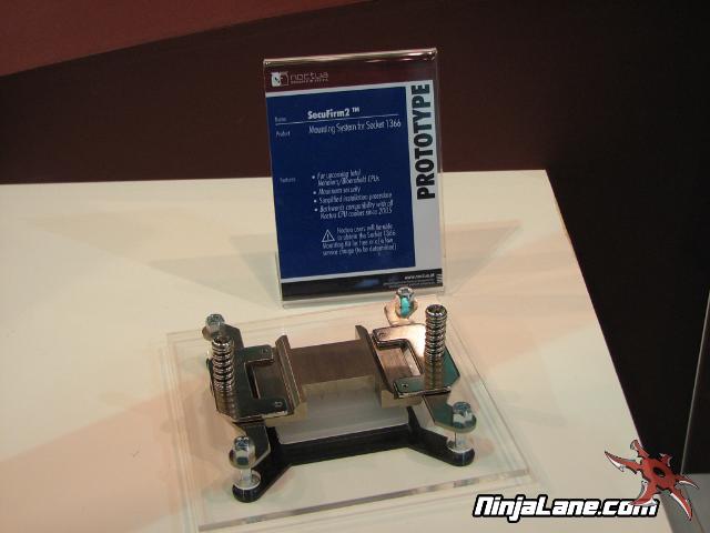 Along with upgraded fan design they had several heatsinks on display and a new mounting method that is reverse compatible with all of their previous coolers released by noctua. The mounting bracket will be available as a no cost upgrade to any noctua heatsink owner with proof of purchase.