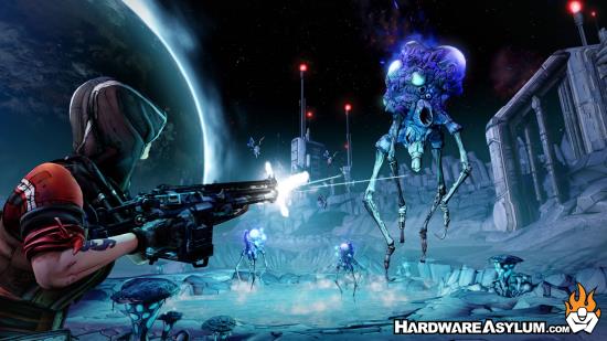 Per the Borderlands recipe there will be four playable characters including Athena, Wilhelm, Nisha and Claptrap. The gameplay will be a little different with low gravity impacting how you move and oxygen coming into play helping with player movement.