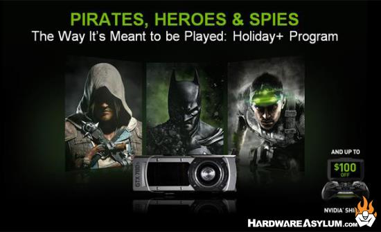 From October 28th until December 31st, gamers who buy a GeForce GTX 780 Ti will receive free downloadable copies of Assassin's Creed IV: Black Flag, Batman: Arkham Origins, and Splinter Cell Blacklist from participating retailers and e-tailers. So not only are you going to get the greatest gaming GPU on the planet, you’ll also get three great games that showcase the latest graphics technologies to go along with your GeForce GTX 780 Ti purchase.