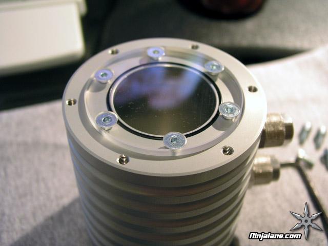 What fun is having a custom watercooled case if you can't see the water moving around? The Innovatek pump assembly comes with a small plastic res but I felt that something was missing to make the project complete. The Fass-O-Matic Barrel Header Tank was just the ticket and on a personal note might be the coolest res in existence.