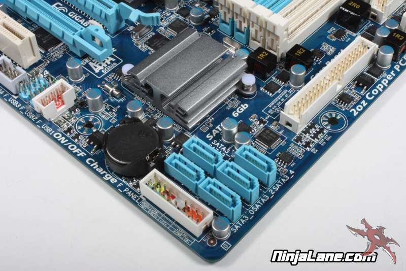 SATA 6GB is natively supported by the AMD SB850 South Bridge. A total of 6 SATA devices are supported, 5 connections internal and a single eSATA on the I/O panel. Legacy IDE is made possible by a JMicron JMB368 controller and the single floppy connection comes as part of the iTE IT8720 controller.