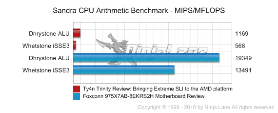 Sandra is a software collection of synthetic benchmarks that will give us a basic idea as to what a system is capable of. It should be noted that SiSoft numbers change depending on what version you have installed; these were recorded using Sandra Professional Version 2007.9.10.105