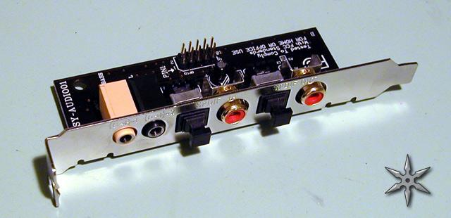 the standard ATX layout with 3 audio plugs. These connections just give you a Line in, Line out and Mic. To get the subwoofer and rear