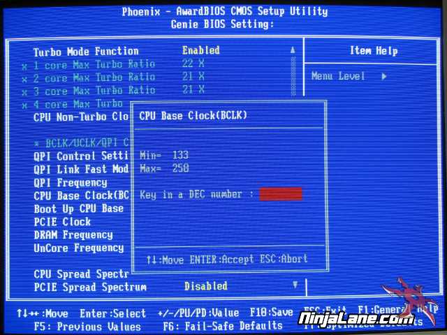 The only downside to the LanParty BIOS is the 250Mhz limit on the Base Clock, otherwise the rest is golden and well poised to fry some chips